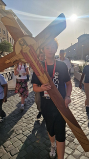 On the last day I didn't oversleep, in fact I woke up early because I had set my alarm wrong. Going to St Peter's Basilica was really nice, especially carrying the Cross there. What I also found great was the St Mary Major Basilica because the Mass in one of the Chapels with the 3 Priests and the 5 Franciscan Friars was really good. Also seeing the tomb of Pope Francis was really moving, so was seeing the Manger Jesus was born in.